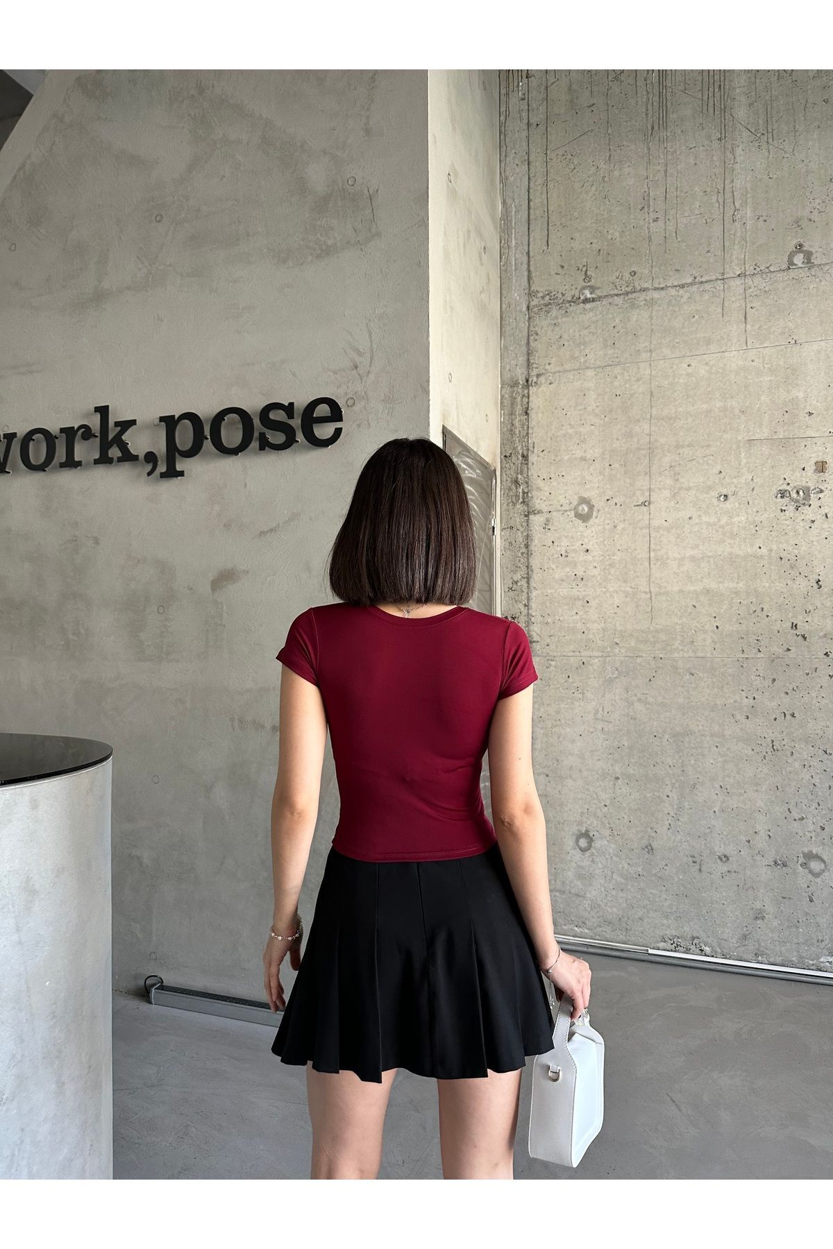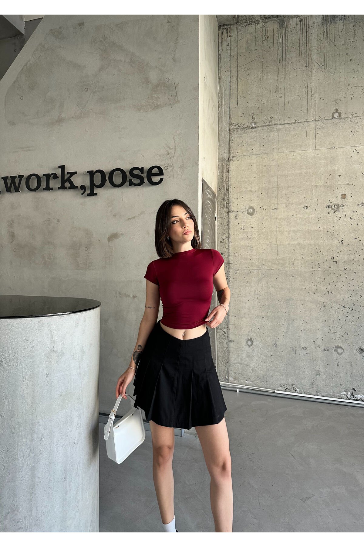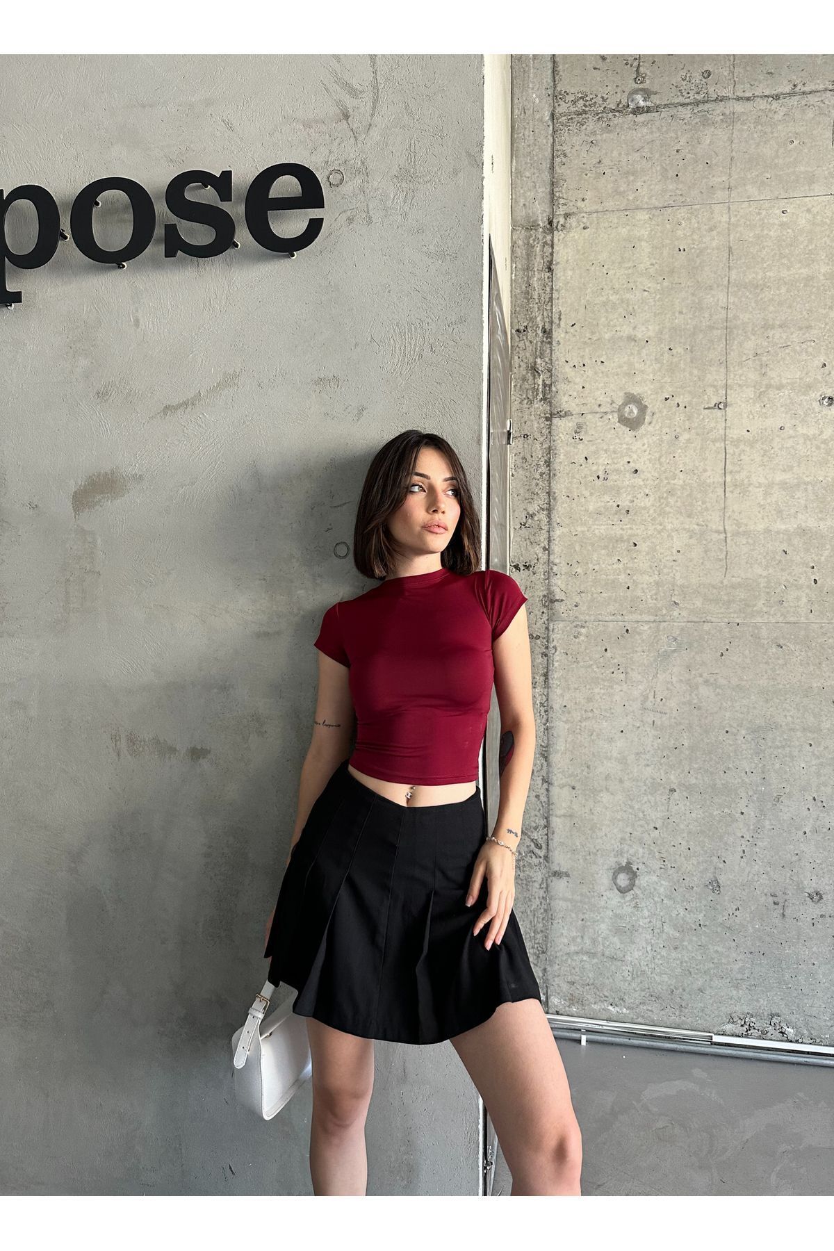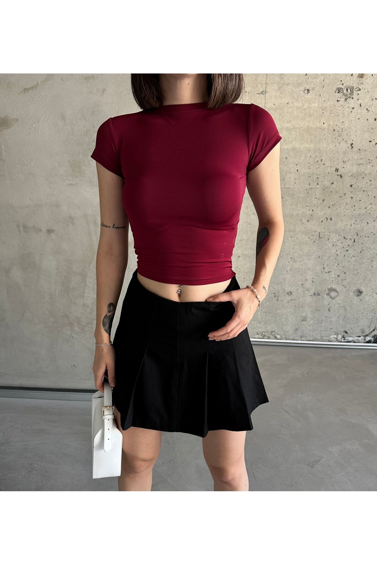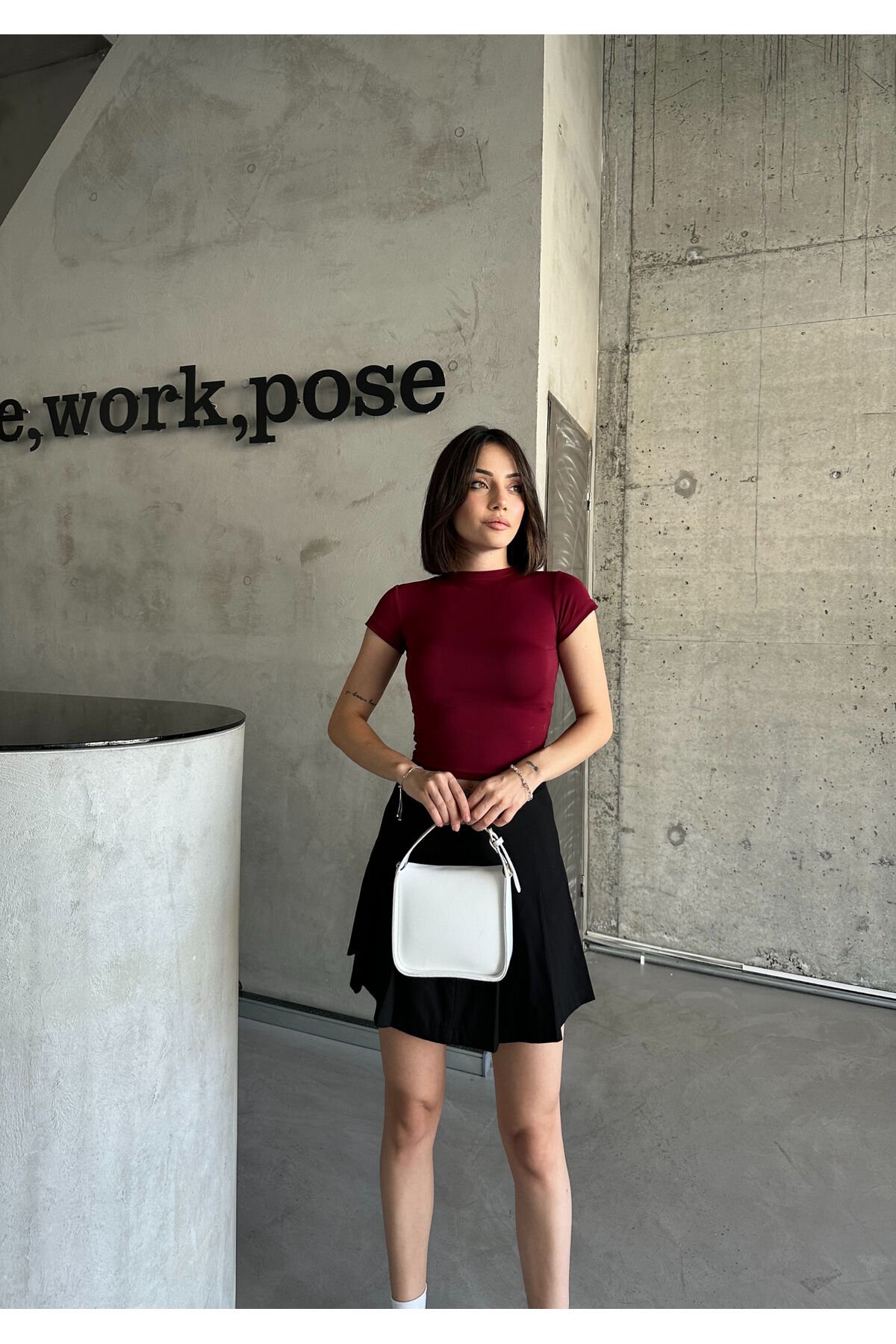Bordo Bisiklet Yaka Basic Kadın T-shirt Bordo - XL