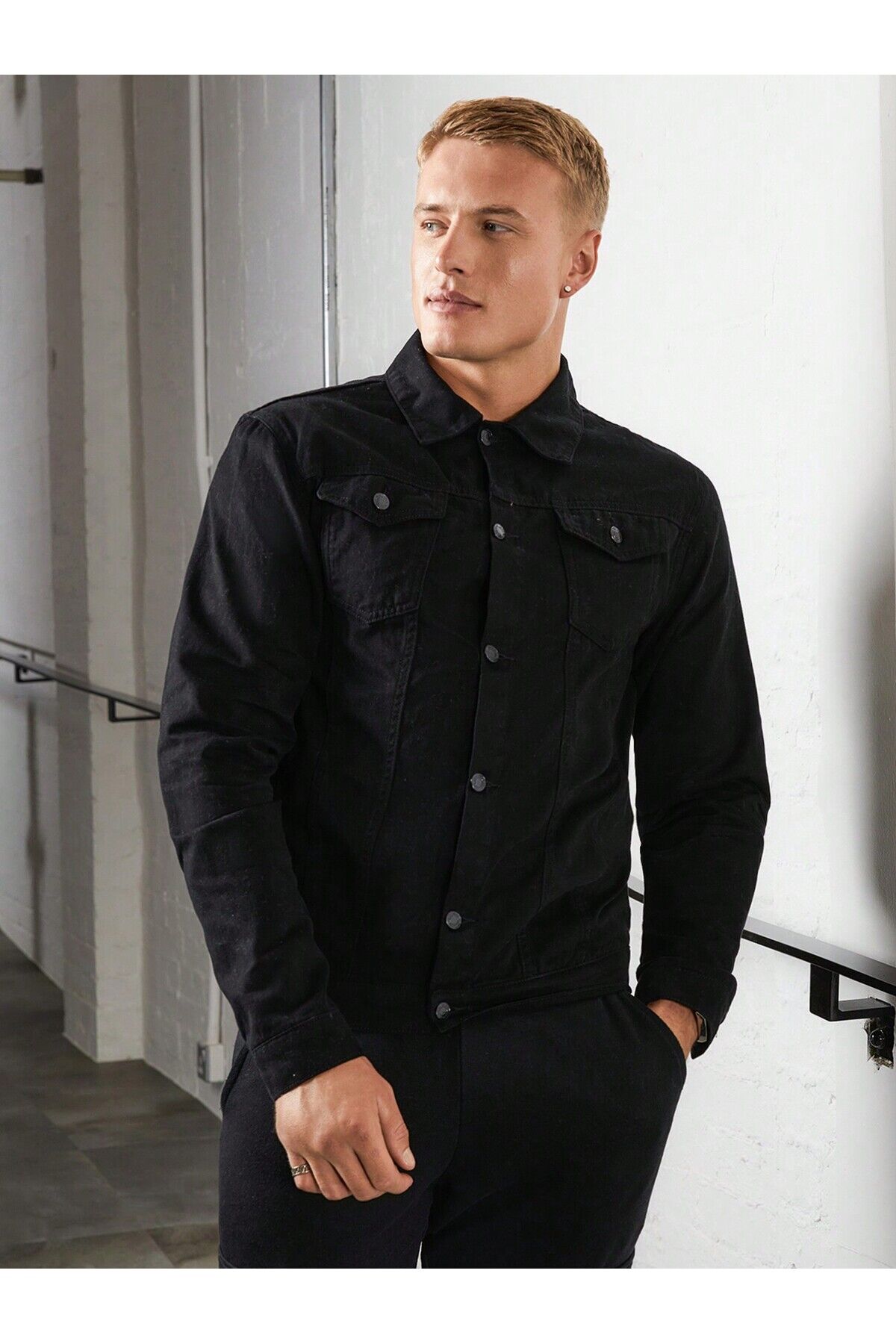 ERKEK DÜĞMELİ SİYAH GABARDİN CEKET SİYAH - S