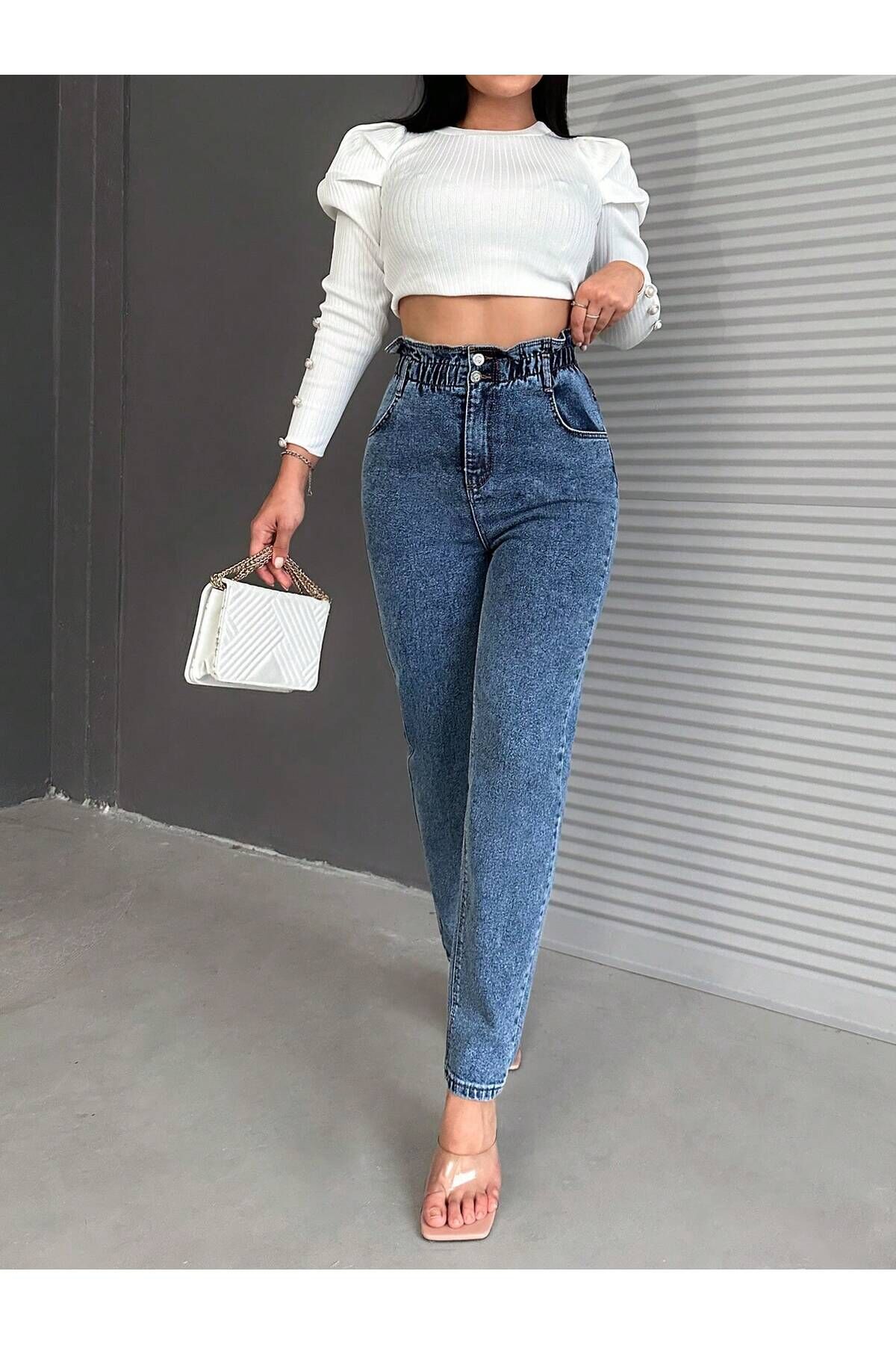 Modern ve şık tasarımıyla dikkat çeken bu kadın bel lastikli siyah kar yıkama mom kalıp likralı jean, günlük kullanımda rahatlık ve tarz sunuyor.; Yüksek bel kesimi sayesinde konforlu bir kullanım sağlarken, boru paça tasarımı modern siluetinizi vurgular.; Denim materyali dayanıklılığı ve kolay bakım avantajlarıyla öne çıkarken, gri renk seçeneği her tür üst giyimle kolayca kombinlenebilir.; Comfort dokuma tipi sayesinde esnek yapısıyla hareket özgürlüğünüzü artırır; 5 cep detayı pratik saklama alanları sunar.; Düğme ve fermuar kapama şekli hem şık görünümü korur hem de giyip çıkarmayı kolaylaştırır.; Günlük stilinizi genç ve dinamik bir koleksiyona ait olarak yansıtmanız için idealdir; tüm yaş gruplarına hitap eder.; Standart boyu ve düz deseniyle zamansız bir parça olup gardrobunuzdaki temel parçalardan biri haline gelir.;Rahat kesimi ile tüm gün konfor sunan comfort dokuma tipi, hareket özgürlüğünüzü kısıtlamaz; Her yaş grubuna hitap eden tasarımıyla geniş bir kullanıcı yelpazesine sahiptir; Standart boy uzunluğu, farklı vücut tiplerine uyum sağlayarak şık bir görünüm sunar; Modern mom silueti ve kalıbı ile zamansız bir tarz yaratır; Boru paça tasarımı, ayakkabı seçiminizi ön plana çıkararak stilinizi tamamlar; Young koleksiyonunun dinamik ruhunu yansıtan bu jean, genç ve enerjik tarzınıza eşlik eder; Dayanıklı dokuma kumaşı sayesinde uzun süreli kullanım vaat eder; Beş cepli yapısıyla pratiklik kazandırırken, günlük eşyalarınız için yeterli alan sağlar; Düz ürün tipi ile sade ve şık bir görünüm elde edersiniz; Düğme ve fermuar kapama şekli kolay giyip çıkarmayı mümkün kılarken, güvenli bir kullanım sunar; Düz deseni sayesinde kolayca kombinlenebilir; her tür üst giyimle uyum sağlar; Den;