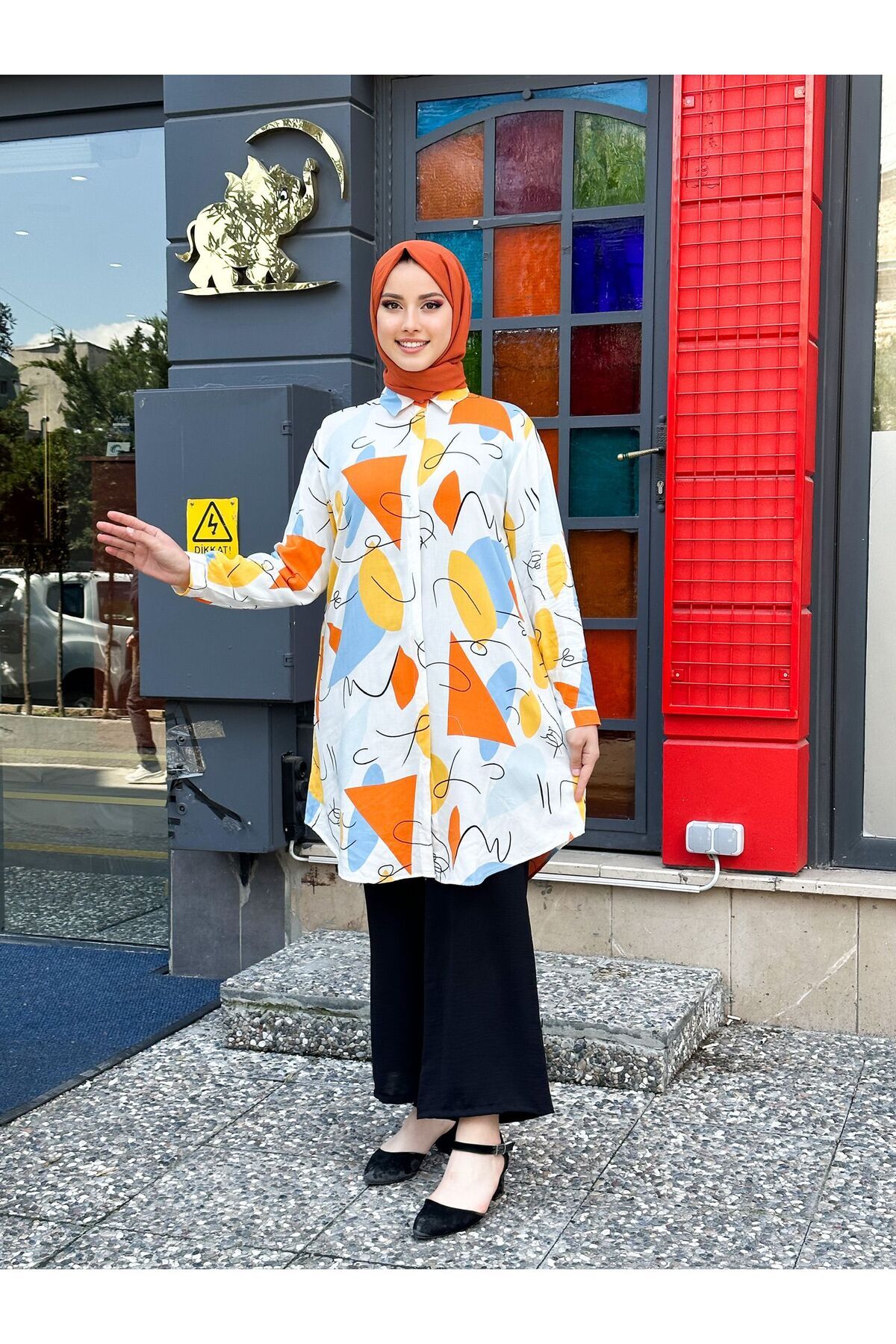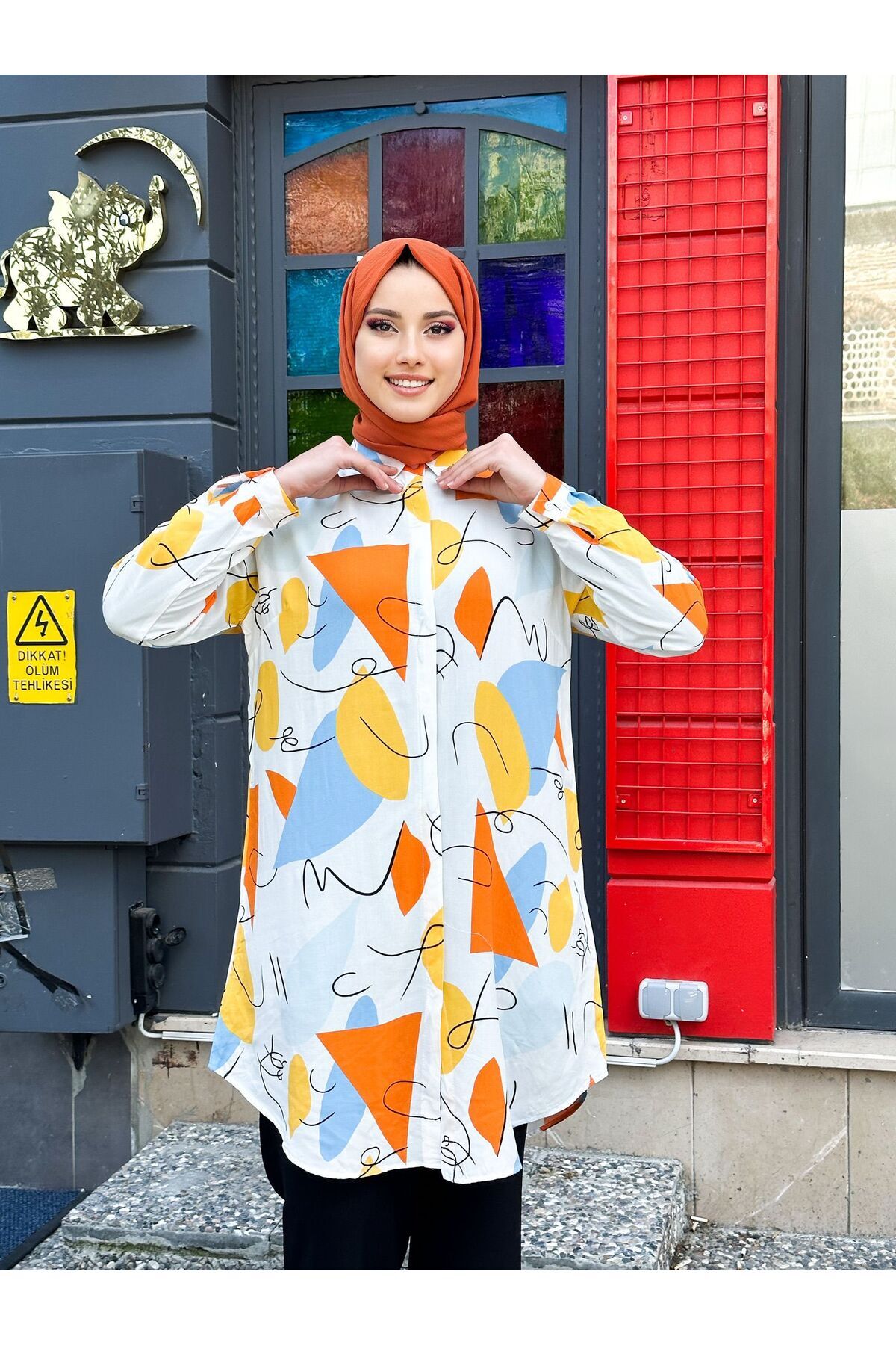 Geniş beden seçenekleriyle her vücut tipine uygun tasarım.; Dijital baskı teknolojisiyle canlı ve kalıcı geometrik desenler.; Trend gömlek yakası ve düğme detaylarıyla modern bir görünüm sunar.; Poliviskon dokuma tipi sayesinde dayanıklı ve konforlu kullanım sağlar.; Uzun kollu tasarımı ile mevsim geçişlerinde ideal koruma sunar.; Casual tarzıyla günlük kullanıma uygun, rahatlıkla kombinlenebilir.; Tesettür giyim koleksiyonuna özel uzun siluetiyle şık ve zarif bir duruş sergiler.; İç göstermeyen yapısıyla güven veren ve pratik bir seçimdir.; Tüm yaş gruplarına hitap eden geniş kullanıcı kitlesi için uygundur.; Büyük beden kalıbı ile rahat hareket etme özgürlüğünüz artar.; Dokuma kumaş yapısı, uzun süreli formunu korumasına yardımcı olur.;Viskon kumaştan üretilmiş, büyük beden battal tunik, hem konforlu hem de şık bir seçenek sunar.; Geometrik dijital baskısı ile modern ve trend bir görünüm kazandırırken, gömlek yaka detayı klasik çizgilere yer verir.; Uzun kollu ve uzun silueti sayesinde tesettür giyim koleksiyonunuzda yer alacak ideal bir parça haline gelir.; Turuncu beyaz renk kombini ile enerjik ve canlı bir stil oluşturmanızı sağlar.; Düğme detaylarıyla pratik kullanım sunan bu tunik, günlük ortamlarda rahatlıkla tercih edilebilir.; İç göstermeyen poliviskon dokuma tipi sayesinde gün boyu rahatlık hissi verir.; Tüm yaş gruplarına hitap eden tasarımıyla herkesin beğenisine uygun bir seçimdir.;