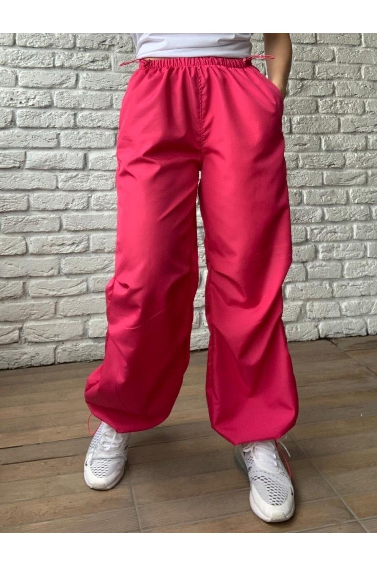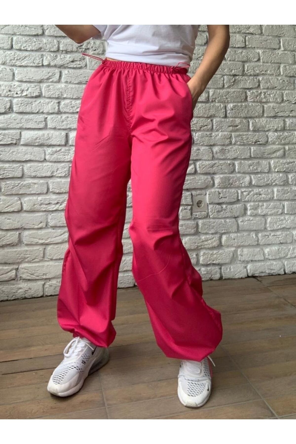 KADIN LASTİKLİ PARAŞÜT KUMAŞ PANTOLON FUŞYA FUŞYA - M