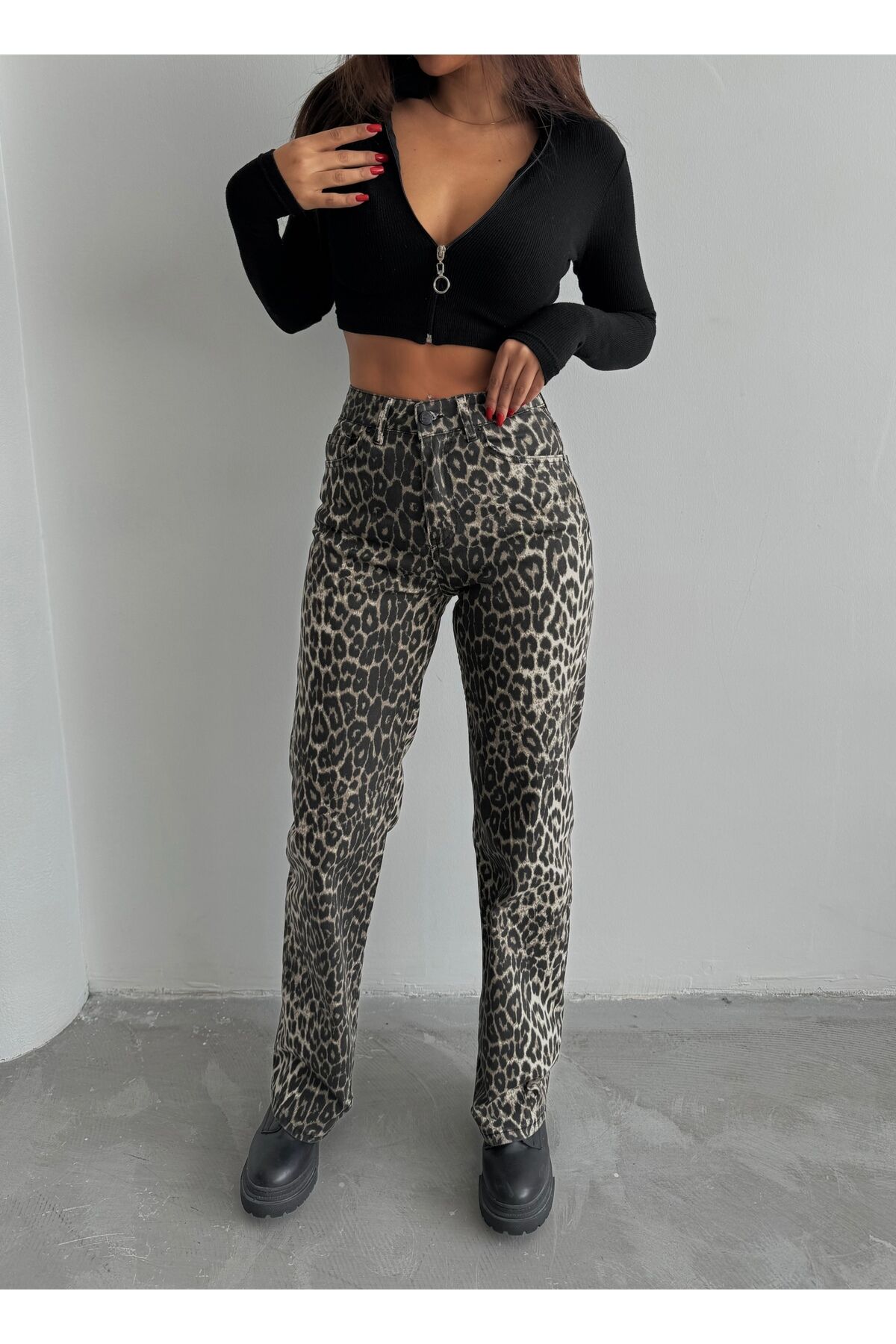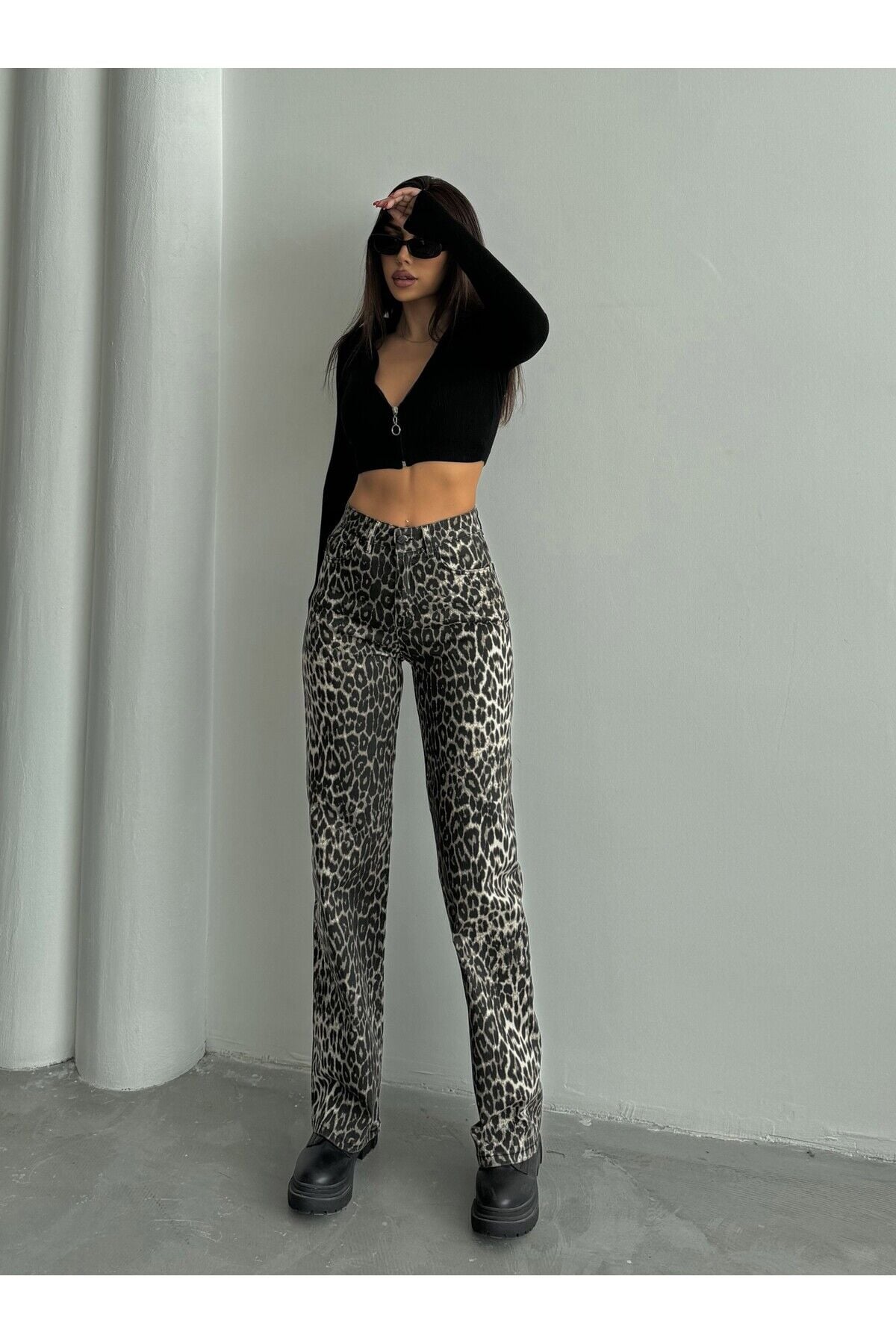 - Yüksek bel tasarımı ile modern ve şık bir görünüm sunar.; - Geniş paça kesimi sayesinde rahat hareket etme özgürlüğü sağlar.; - Leopar deseniyle dikkat çekici ve stil sahibi bir görünüm kazandırır.; - Dijital baskı tekniği ile canlı ve net desenler elde edilir.; - %97 pamuk içeriği cildinize nefes aldırırken konforlu bir kullanım sunar.; - Kemer detayı belinizi vurgulayarak feminen bir siluet oluşturur.; - Denim kumaşı dayanıklılığı ve şıklığı bir arada sunar.; - Astar içermeyen yapısıyla pratik kullanım sağlar.; - Her yaş grubuna hitap eden geniş beden skalasıyla herkes için idealdir.; - Uzun boyu ile bacakları olduğundan daha uzun gösterir.; - Renkli deseniyle enerjik ve dinamik bir stil oluşturur.; - %2 elastan içeriği esneklik kazandırarak gün boyu rahatlık sunar.; - Koton içeriği sayesinde yumuşak dokusuyla konforlu bir deneyim yaşatır.- Yüksek bel tasarımı ile gün boyu konforlu bir kullanım sunar ve vücut hatlarını zarifçe sarar.; - Uzun paça boyu, modern ve şık bir görünüm sağlarken, geniş paça kesimi rahat hareket etme özgürlüğü tanır.; - Denim kumaşı sayesinde dayanıklılık ve uzun ömürlü kullanım vaat eder.; - Genç ve dinamik tarza hitap eden renkli leopar deseniyle stilinizi öne çıkarır.; - Dokuma kumaş yapısı, ürünün formunu korumasına yardımcı olurken, orta kalınlığıyla mevsim geçişlerinde ideal bir seçenek sunar.; - Beş cepli tasarım hem fonksiyonellik kazandırır hem de günlük eşyalarınız için pratik saklama alanları sağlar.; - Straight kalıp ile rahat bir oturuş sunarken, oversize modeliyle trend bir görünüm kazandırır.; - Şık ortamlarda bile rahatlıkla tercih edebileceğiniz bu pantolon, günlük kombinlerinizde de kolayca yer bulur.; - Dijital baskı tekniğiyle üretilen canlı renkler ve net desenler uzun süre solma yapmadan kalitesini korur.; - %97 pamuk içeriği cildinizin nefes almasını sağlarken %3 elastan esneklik katkısıyla konforu arttırır.; - %98 kotondan oluşan yıkama talimatları sayesinde kolay bakım imkanları sunar; böylece pantolonunuzun ilk günkü gibi kalmasına yardımcı olur.; - Tüm yaş gruplarına hitap eden geniş beden skalasıyla herkes için uygunluk gösterir.