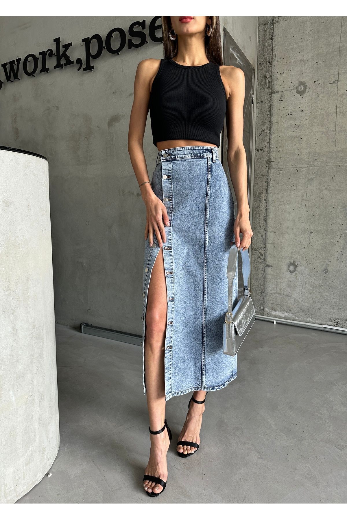 .;Yüksek bel tasarımı ile konforlu bir kullanım sunar ve vücut hatlarını zarifçe sarar; %100 pamuk materyal bileşeni sayesinde nefes alabilen yapısıyla gün boyu rahatlık sağlar; Astarlı yapısı ile ekstra konfor ve şıklık sunarken, iç giyimle uyumlu bir görünüm kazandırır; Genç yaş grubuna hitap eden dinamik ve modern tasarımıyla dikkat çeker; Denim kumaş tipi, dayanıklılığı ve kolay kombinlenebilirliği ile gardırobunuzun vazgeçilmezi olacak; Comfort kalıp sayesinde hareket özgürlüğünüzü kısıtlamaz ve rahat bir kullanım sunar; Düz deseniyle sade ve zamansız bir stil oluşturur; her tür üst giyimle kolayca uyum sağlar; Orta kalınlıkta denim dokuma tipi, mevsim geçişlerinde ideal bir tercih oluşturur; Maxi boyu ile hem günlük hem de özel günlerde şık bir görünüm sunarken, farklı kombin seçenekleri yaratma imkanı tanır; Young koleksiyonunun enerjik ruhunu yansıtan;