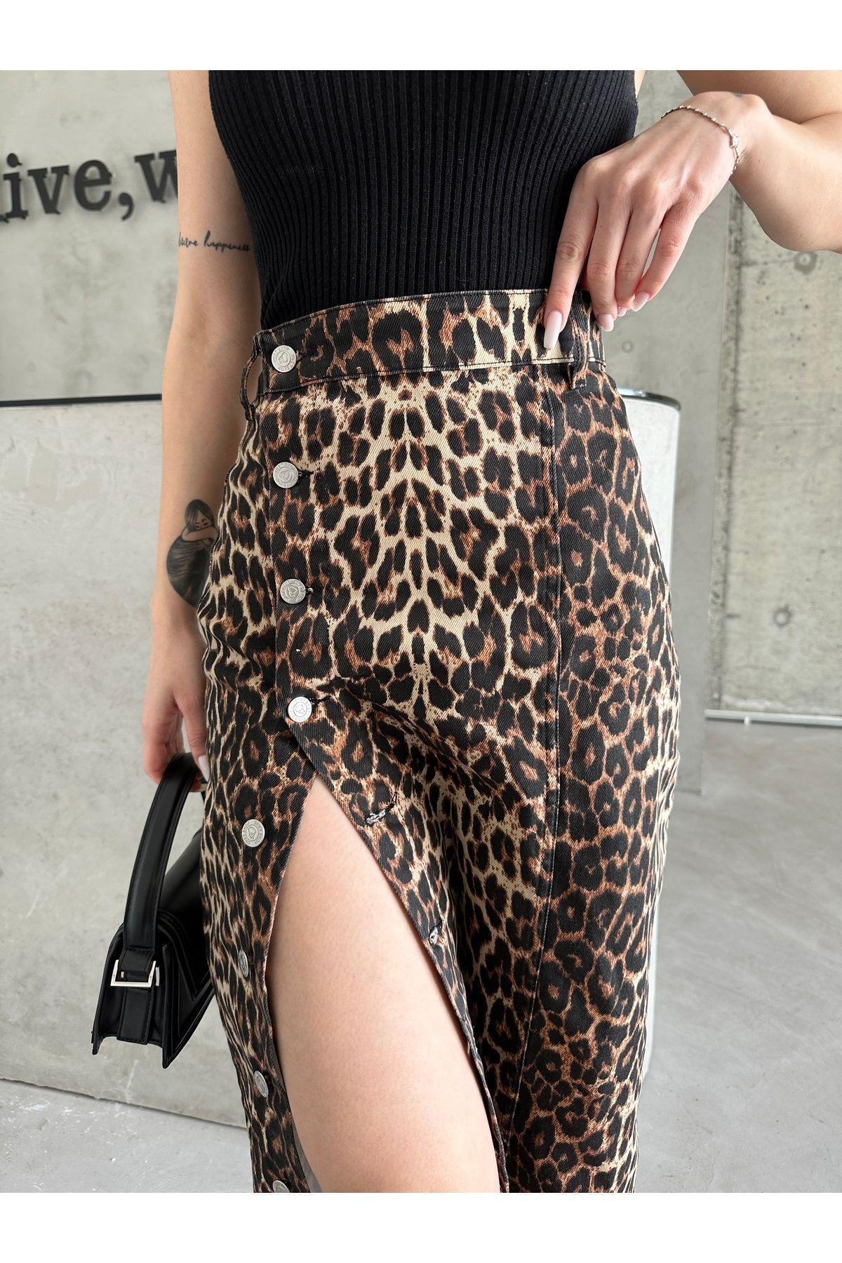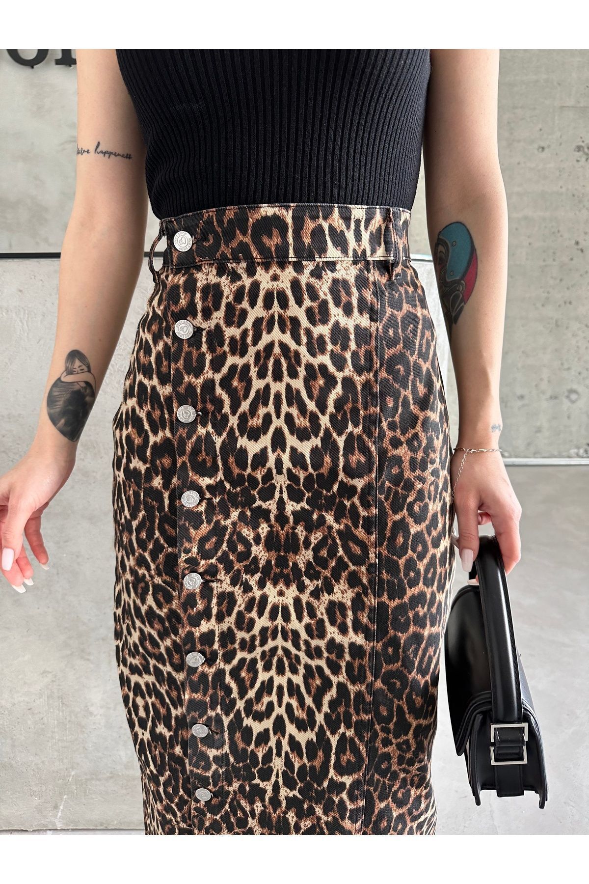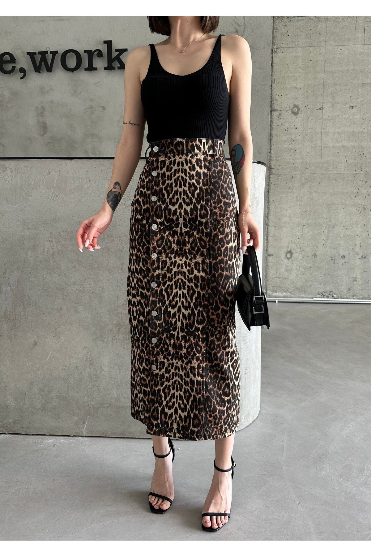 .;- Her yaş grubuna hitap eden tasarımıyla, genç ve dinamik bir stil sunar; - Astarlı yapısı sayesinde rahat bir kullanım sağlar ve konforlu bir deneyim sunar; - Maxi boyu ile hem günlük hem de özel günlerde şık bir görünüm kazandırır; - Likralı kumaşı esneklik sunarak hareket özgürlüğü sağlar ve vücut hatlarını nazikçe sarar; - Yıkama sonrasında bile formunu koruyan dayanıklı denim kumaştan üretilmiştir; - Önündeki düğme detayı ile modern ve şık bir dokunuş eklerken, leopar deseniyle dikkat çekici bir stil oluşturur; - Düz deseni sayesinde kolayca kombinlenebilir ve farklı üst giyim parçalarıyla uyum sağlar; - Orta kalınlığındaki denim kumaşı mevsim geçişlerinde ideal bir tercih olurken, comfort kalıbı rahatlığı ön planda tutar.; - Young koleksiyonunun enerjik ruhunu yansıtan bu etek, genç tarza;