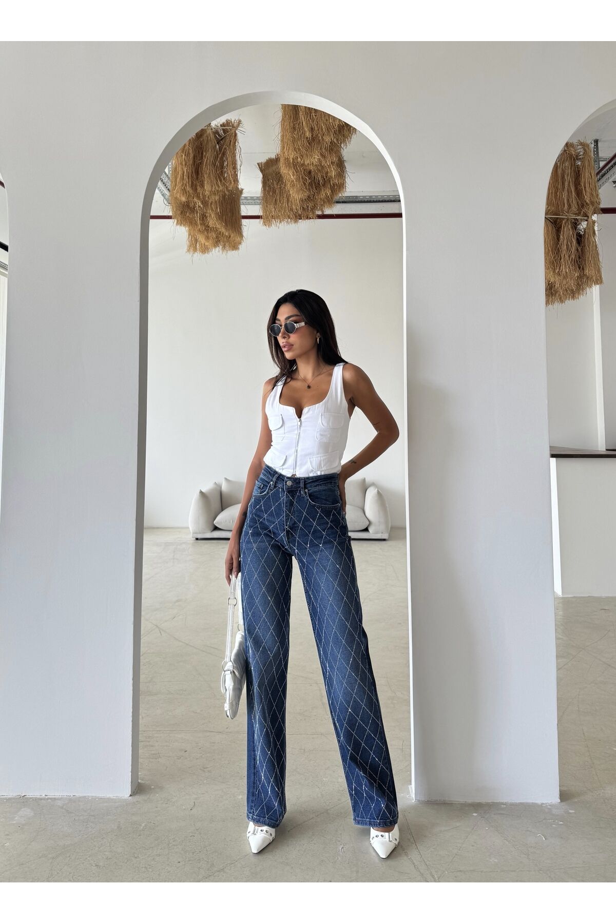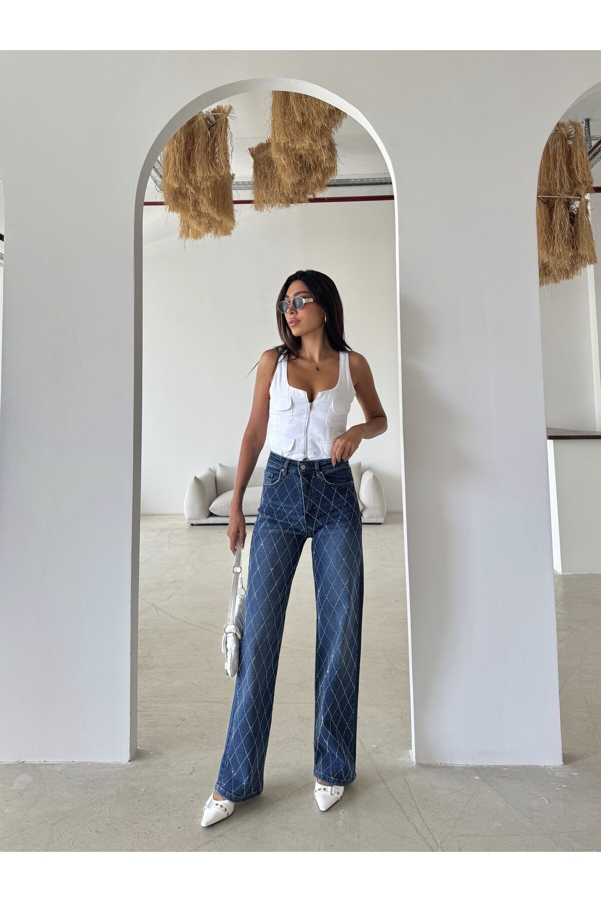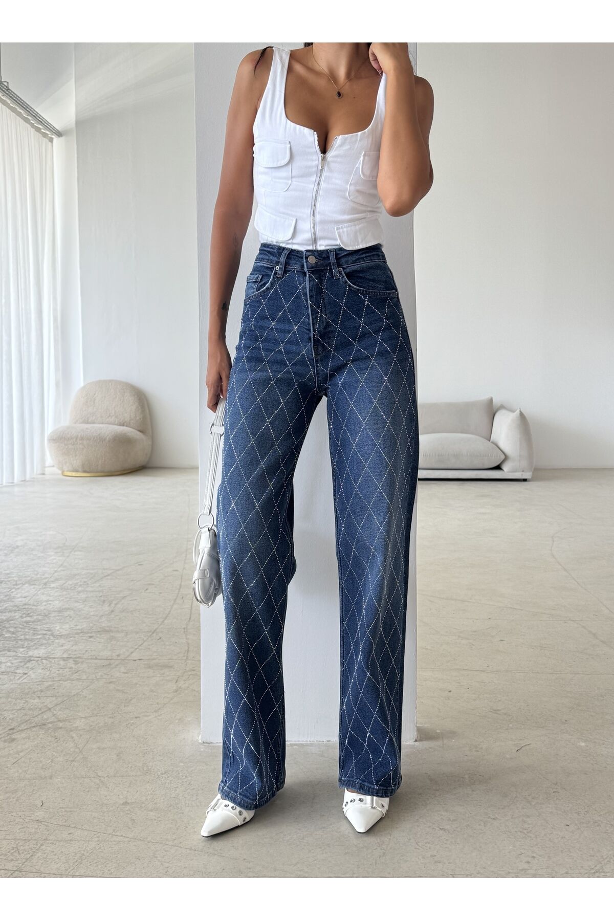 - Siyah renkli taş detaylarıyla zenginleştirilmiş, geniş paça tasarımıyla modern ve şık bir görünüm sunar.; - Full fermuar kapama özelliği sayesinde pratik kullanım sağlar ve kolayca giyilip çıkartılabilir.; - Casual ortamlarda rahatlıkla tercih edilebilecek günlük kullanım için idealdir.; - Çift cepli yapısı ile küçük eşyalarınızı yanınızda taşımanız için ekstra alan sunar.; - Orta kalınlıkta kumaşı, mevsim geçişlerinde ve serin havalarda konforlu bir deneyim sağlar.; - Kemersiz tasarımı, bel bölgesinde doğal bir oturuş sağlayarak rahat hareket etme imkanı tanır.; - Cool & Comfort persona ile hem stil sahibi hem de rahat bir görünüm elde edersiniz.; - Baskısız düz deseniyle sadelikten yana olanların tercihi olacak şekilde tasarlanmıştır.; - Regular silueti sayesinde vücut hatlarınıza uyum sağlayarak şık bir duruş sergiler.; - Pamuklu materyali nefes alabilirlik ve yumuşaklık sunarak gün boyu konforlu kullanım vaat eder.; - Astarsız yapısıyla hafiflik hissi verirken, yıkama sonrası formunu koruyan kaşkorse dokuma tipine sahiptir.; - Geniş paça kesimi modern siluetlere uyum sağlarken, denim koleksiyonunun parçası olarak gardırobunuza- Rahat ve şık bir görünüm için tasarlanmış, yüksek bel geniş paça palazzo pantolon.; - Kaşkorse dokuma tipi ile gün boyu konforlu bir kullanım sunar.; - Pamuklu materyali sayesinde nefes alabilen yapısıyla cildinizi rahat ettirir.; - Casual ortamlarda rahatlıkla tercih edilebilecek düz desenli tasarım.; - Astarsız yapısıyla hafif ve konforlu bir deneyim sağlar.; - Full düğme kapama özelliği ile kolay giyilip çıkarılabilir.; - Denim kumaşı sayesinde dayanıklılık ve şıklığı bir arada sunar.; - Geniş paça tasarımı ile modern ve trend bir görünüm kazandırır.; - Baskısız yüzeyiyle sade ve zarif bir stil oluşturur.; - Taş aksesuar detayı ile göz alıcı bir dokunuş ekler.; - Yıkamalı özelliği ile kolay bakım imkanı tanır.; - Kemersiz tasarımı sayesinde farklı bel aksesuarlarıyla kişiselleştirilebilir.; - Tüm sezonlar için uygun kalınlıkta orta seviye kumaş yapısı.; - Kutu içinde gelmeyen ürün, doğrudan kullanım için hazırdır.; - Regular kalıp ile vücut hatlarınıza uyum sağlayacak şekilde tasarlanmıştır.; - Genç yaş grubuna hitap eden modern ve dinamik stil.;