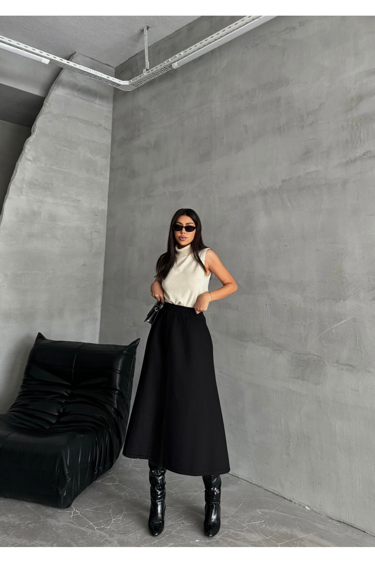 - Yüksek bel tasarımı ile gün boyu konforlu bir kullanım sunar ve vücut hatlarını zarifçe sarar.; - Lastikli bel detayı sayesinde rahat bir oturuş sağlar ve hareket özgürlüğü tanır.; - Midi boy kesimiyle hem günlük hem de özel günlerde şık bir görünüm elde edilir.; - Denim kumaşı, dayanıklılığı ve rahatlığı ile öne çıkar; uzun süreli kullanımlarda bile formunu korur.; - %97 pamuk içeriği cildin nefes almasını sağlar ve yumuşak dokusuyla konforlu bir deneyim sunar.; - Elastan karışımı esneklik kazandırarak hareket serbestisi verirken, kumaşın esnekliğini arttırır.; - Kemerli yapısı ile belinizi daha ince gösterirken, kloş siluetiyle feminen bir hava katmaktadır.; - Cepsiz tasarımı sayesinde minimalist ve sade bir stil yaratırken, günlük kullanım için idealdir.; - Young koleksiyonunun dinamik ruhunu yansıtan bu etek, genç ve canlı tarza sahip kadınların tercihi olur.; - Cool & Comfort Persona ile modern ve rahat bir görünüm elde edilirken aynı zamanda stil sahibi olmanız garanti edilir.; - Tüm yaş gruplarına hitap eden tasarımıyla geniş bir kullanıcı yelpazesine sahiptir.; - Günlük ortamlarda rahatlıkla tercih edilebilecek düz deseniyle kolayca kombinlenebilir.; - Astarsız yapısı sayesinde ekstra konfor sağlar ve katmanlı giyim için idealdir.- Yüksek bel tasarımı ile gün boyu konforlu bir kullanım sunar ve vücut hatlarını zarifçe sarar.; - Lastikli yapısı sayesinde rahat bir oturuş sağlar ve hareket özgürlüğünüzü kısıtlamaz.; - Midi boy kesimiyle hem günlük hem de özel günlerde şık bir görünüm elde etmenizi sağlar.; - Denim kumaşı, dayanıklılığı ve kolay kombinlenebilirliği ile gardırobunuzun vazgeçilmez parçası haline gelir.; - %97 pamuk ve %3 elastan içeriği, nefes alabilirlik ve esneklik sunarak gün boyu rahat etmenizi sağlar.; - Cepsiz tasarımı ile minimalist bir stil yaratırken, düz deseniyle zamansız bir şıklık sunar.; - Kemer detayı belinizi vurgulayarak feminen bir siluet oluştururken, kloş kesimiyle modern bir hava katar.; - Her yaş grubuna hitap eden tasarımıyla geniş kullanıcı yelpazesine sahiptir; gençten yetişkine herkes için idealdir.; - Denim kumaşın dayanıklılığı sayesinde uzun süreli kullanım vaat ederken, yıkama talimatlarına uyarak ürün ömrünü uzatabilirsiniz.; - Günlük ortamlarda rahatlıkla tercih edebileceğiniz bu etek, casual giyim tarzınıza kolayca uyum sağlar.