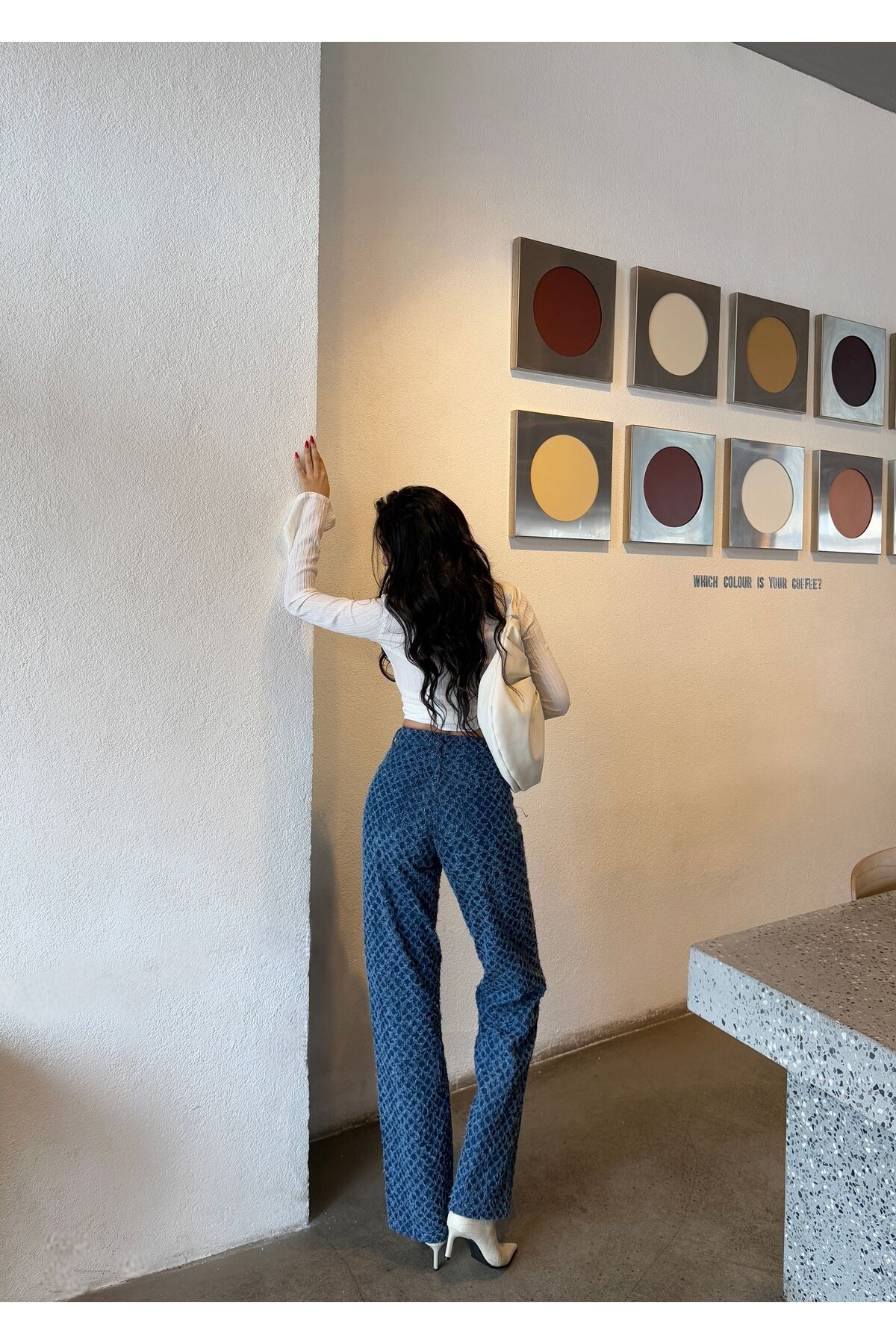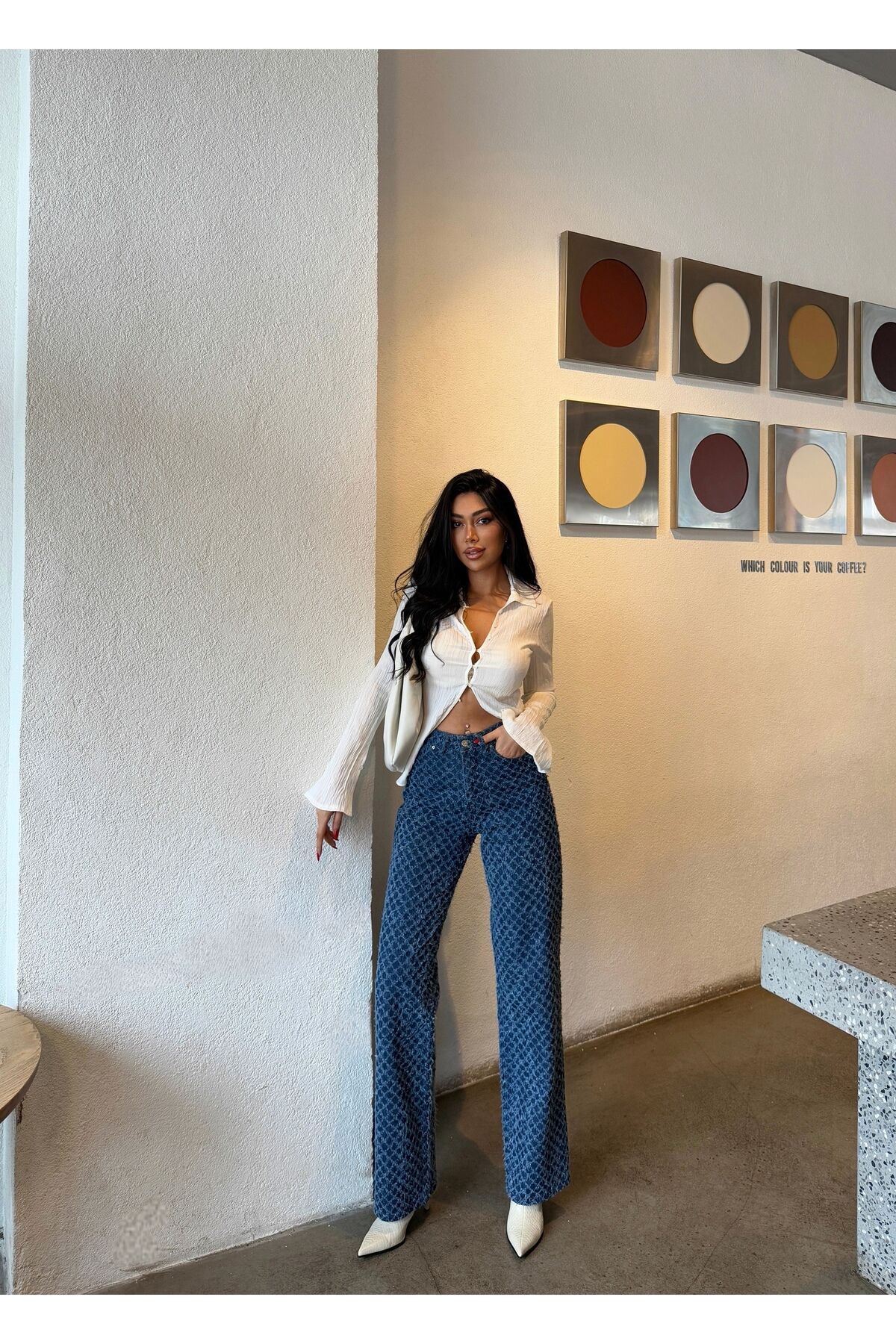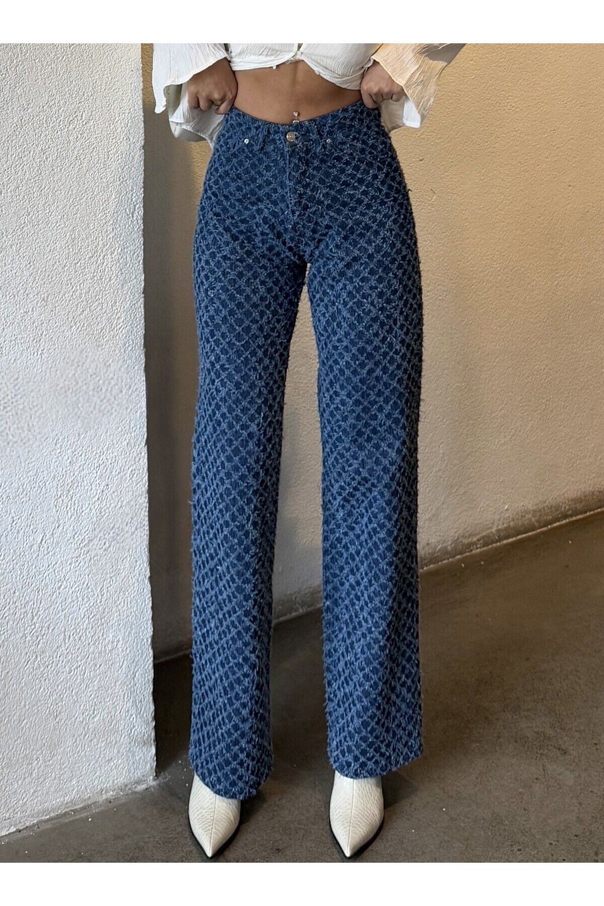 Kadın Yüksek Bel Özel Tasarım Mavi Renk Geniş Paça Pantolon Mavi - 40