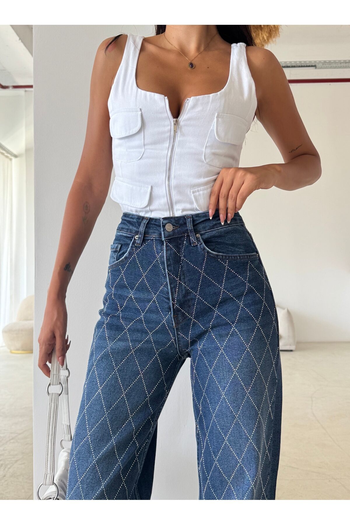 - Yüksek bel tasarımı sayesinde gün boyu konforlu bir kullanım sunar ve vücut hatlarını zarifçe sarar.; - Esnek yapısı ile hareket özgürlüğünüzü kısıtlamaz, rahatlıkla günün her anında tercih edebilirsiniz.; - Regular kalıbı, vücudu saran ancak sıkmayan ideal bir oturuş sağlar.; - 5 cep detayı ile pratik kullanım imkanı sunar; telefon, anahtar gibi eşyalarınızı kolayca taşıyabilirsiniz.; - Cool & Comfort persona'sına uygun tasarımıyla günlük kullanım için idealdir; hem şık hem de rahat bir görünüm sağlar.; - Denim dokuma tipi, dayanıklılığı ve zamansız şıklığı bir arada sunar.; - Geniş paça tasarımı modern bir siluet oluştururken, palazzo jean tarzını yansıtır.; - Tüm sezonlar için uygun olan bu jean, gardırobunuzun vazgeçilmez parçası haline gelecektir.; - Düz deseni ve sade tasarımıyla kolayca kombinlenebilir; farklı üst giyim parçalarıyla uyum sağlar.; - Düğme ve fermuar kapama şekli sayesinde kolayca giyilip çıkarılabilir ve güvenli bir kullanım sunar.; - Casual/Günlük ortamlar için mükemmel seçimdir; arkadaş buluşmalarından alışverişe kadar her yerde rahatlıkla tercih edilebilir.; - Türkiye'de üretilmiştir; yerel üretimle desteklenmiş bir üründür.; - Uzun boyu ile bacakları olduğundan daha uzun gösterir ve şık bir görünüm kazandırır.; - Genç yaş grubuna hitap eden dinamik ve trend bir tasarıma sahiptir.;- Yüksek bel tasarımı sayesinde gün boyu konforlu bir kullanım sunar ve vücut hatlarını zarifçe sarar.; - Esnek yapısı ile hareket özgürlüğünüzü kısıtlamaz, rahatlıkla günün her anında tercih edebilirsiniz.; - Regular kalıbı, vücudu saran ancak sıkmayan ideal bir oturuş sağlar.; - 5 cep detayı ile pratik kullanım imkanı sunar; telefon, anahtar gibi eşyalarınızı kolayca taşıyabilirsiniz.; - Cool & Comfort persona'sına uygun tasarımıyla günlük kullanım için idealdir; hem şık hem de rahat bir görünüm sağlar.; - Denim dokuma tipi, dayanıklılığı ve zamansız şıklığı bir arada sunar.; - Geniş paça tasarımı modern bir siluet oluştururken, palazzo jean tarzını yansıtır.; - Tüm sezonlar için uygun olan bu jean, gardırobunuzun vazgeçilmez parçası haline gelecektir.; - Düz deseni ve sade tasarımıyla kolayca kombinlenebilir; farklı üst giyim parçalarıyla uyum sağlar.; - Düğme ve fermuar kapama şekli sayesinde kolayca giyilip çıkarılabilir ve güvenli bir kullanım sunar.; - Casual/Günlük ortamlar için mükemmel seçimdir; arkadaş buluşmalarından alışverişe kadar her yerde rahatlıkla tercih edilebilir.; - Türkiye'de üretilmiştir; yerel üretimle desteklenmiş bir üründür.; - Uzun boyu ile bacakları olduğundan daha uzun gösterir ve şık bir görünüm kazandırır.; - Genç yaş grubuna hitap eden dinamik ve trend bir tasarıma sahiptir.;
